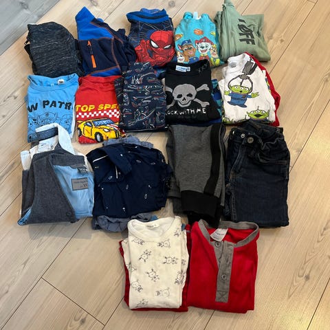 25 plagg av klær til gutt i str 104,110 og to bukser i 120(fra 157 butikk). Selges til 280 kr. Alt er vasket og klar til bruk. Kan sendes mot betaling av kjøperen 😊