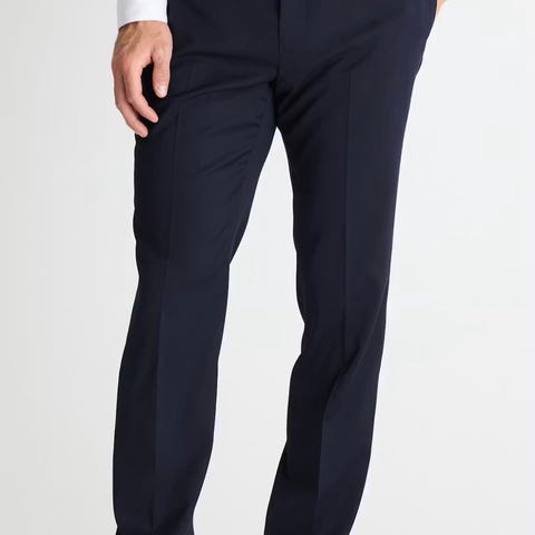Dressmann bukser i størrelse L for menn, laget av polyester. Fargen er brun. Buksen har knappfeste og lommer bak. Egnet som hverdags- eller formelt antrekk.