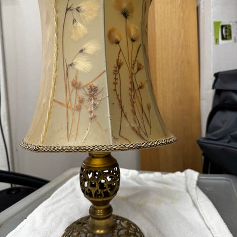 Både skjerm og lampe er rengjort, delikat, vakker og klar til bruk.