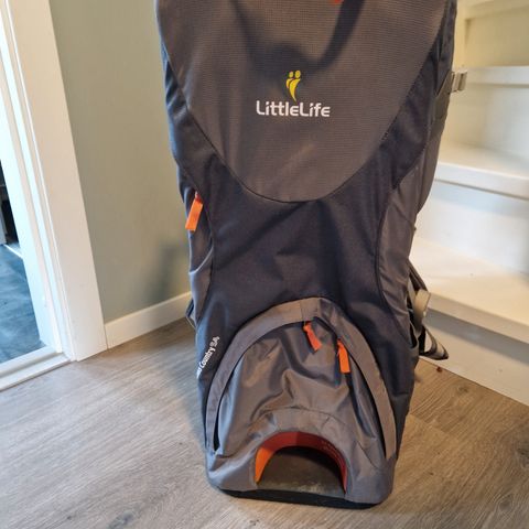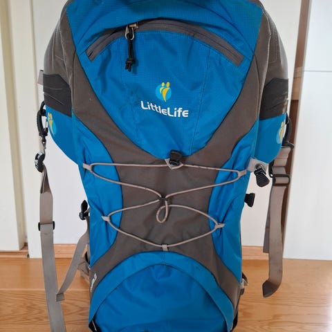 Bæremeis fra Little life. Litt solbleket I fargen og noen bruksmerker, men i ellers god stand. Praktiske rom og lommer til ting man trenger på tur.