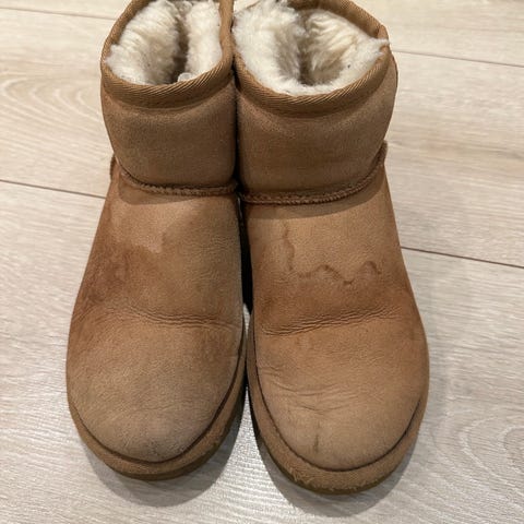 UGG støvler i størrelse 36. Støvlene har en gullfarget overflate og er laget med varmeisolerende materiale for komfort og beskyttelse mot kulde. Godt brukt, men holder et par sesonger til!