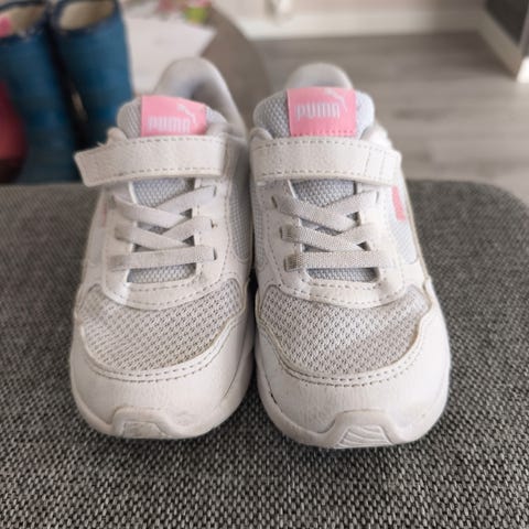 Puma barnesko størrelse 25 jente hvit med lilla glitter