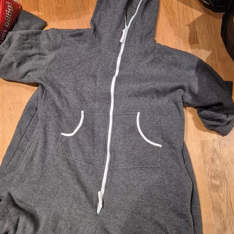 University joggedress i blå farge, merket med str XS, men vil si den passer opptil XL. Laget av bomull. Designet er unisex, denne joggedressen har glidelåslommer og hette.