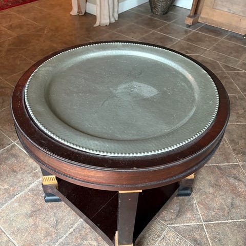 Bord lagd av gml teak . Kjøpt i Indonesia . Aldri brukt , men lagret noen år. Unikt objekt . Solid og tungt. Må hentes i Heggedal