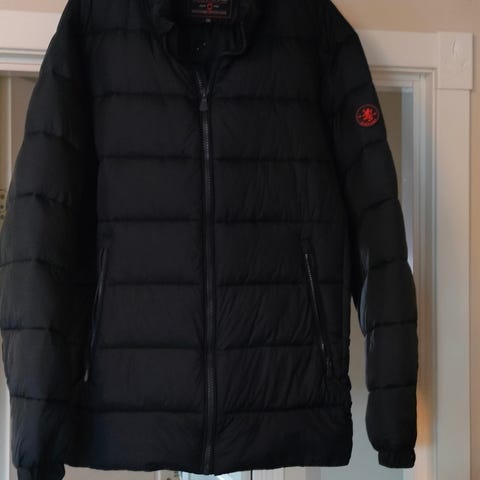 Svart tynn vinterjakke str L. Vattert vest, med ermer i fleece.