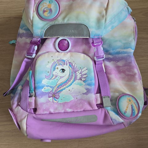 Kjøpt ny av oss, brukt av 2 barn på reiser med fly. Den har noen knekkskader nederst. Se bilder. Disse skadene ble påført under første reise og har ingen betydning for bruk. Vi har brukt den etter flere ganger, super koffert. Selges til 200. Nypris var over 800 den gangen.