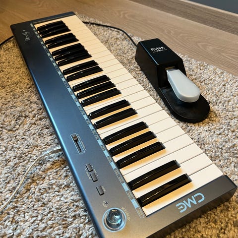 Bontempi keyboard med 32 tangenter. Har 18 rytmer, 24 lyder og 18 sanger.