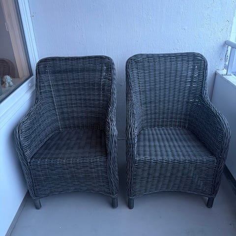 To stoler og en liten sofa. Bord med glassplate. Har alle puter og.