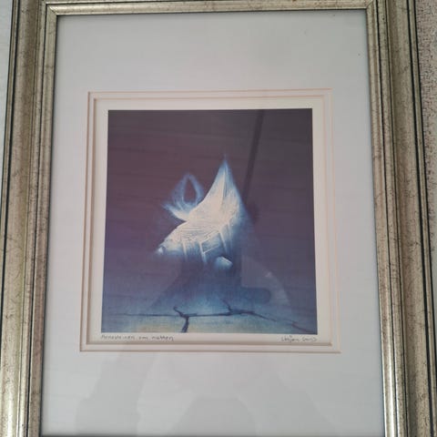Innrammet tegning med englemotiv. Bildet er signert. Rammen kan både stå og henge. Kan sendes. Kr.200