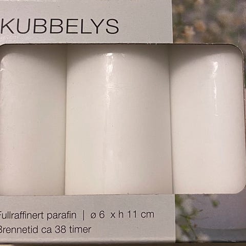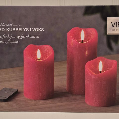 Kjøpt på Plantasjen i 2023 for kr 199, av merket Deluxe Homeart. Kvittering ligger i esken, men byttefrist er utgått for lenge siden. Lignende lys i dag av samme størrelse selges for ca 200-lappen eller mer. Var en mørkere farge enn jeg ønsket, selges derfor videre for kr 100.