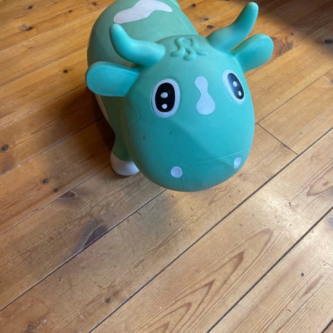 Selger en blå hoppeku til barn. Perfekt for å hoppe, balansere og leke både inne og ute.