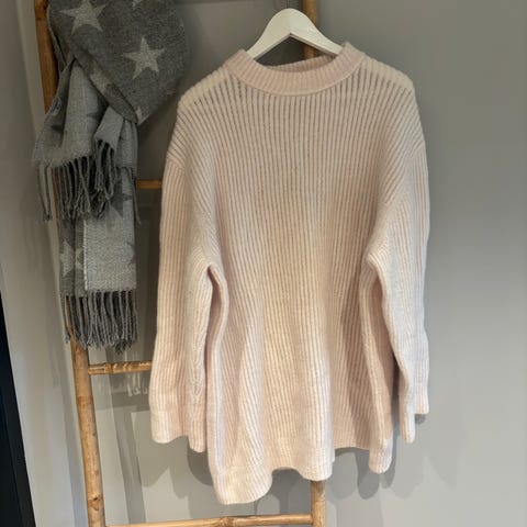 Ammekjole i strikket myk kvalitet med 5% ull. Bittelitt nupper foran.