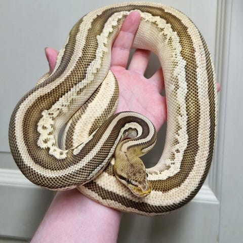 Nagini er rolig, håndterbar og har aldri bitt eller vist tegn til å bite. Spiser stabilt og har hatt gode forhold siden kjøp.