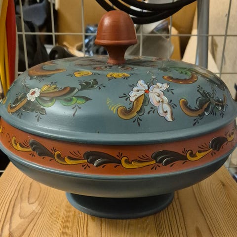 Vintage norsk rosemalt bolle selges.