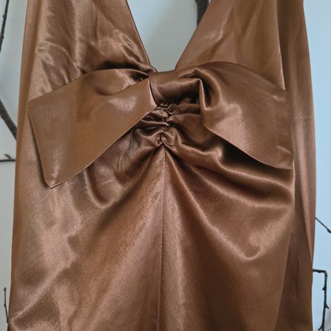 Stoffet er glatt med lett glans og faller pent mot kroppen.