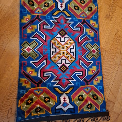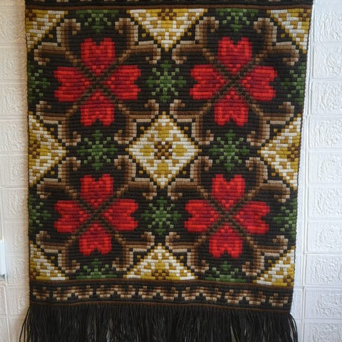 Veggteppe brodert. Mål ca. 52 x 140.