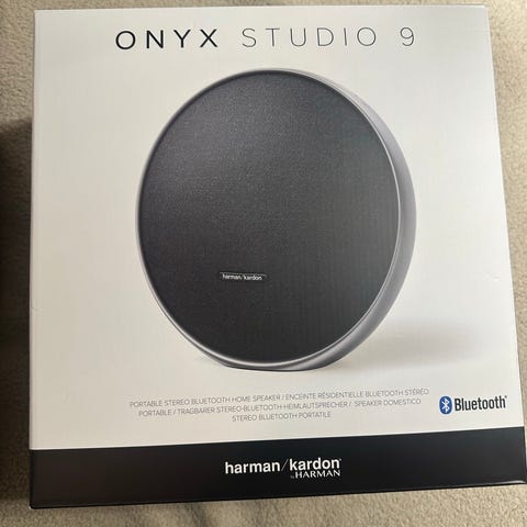 Harman Kardon Onyx Studio 9 Bluetooth høyttaler med trådløs tilkobling. Produktet leveres i originalemballasje. Fantastisk høytaler for bruk hjemme eller på hytta.