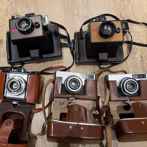 Selger samanliga mi . Helst samlet men kan selge enkeltavis også . Ingen kamera er testa men disse er i god stand i forholdt til alder . Kun Rolleicord har ikke etui . Kan sendes.