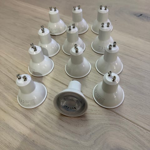 Skinne med 4 vendbare spotter. 4 nye smart-pærer til en verdi av 400kr følger med.