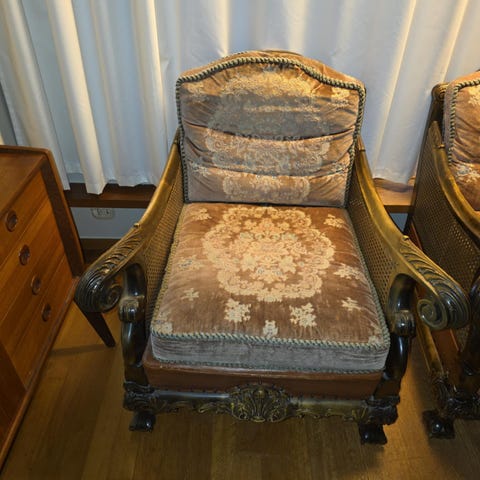 Selger to pent brukte vintage Chr. KNAG - stoler i brun og burgunderfarge.