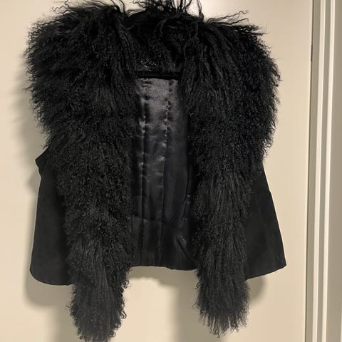Jofama brun semsket skinnjakke med teddyfor str 38.