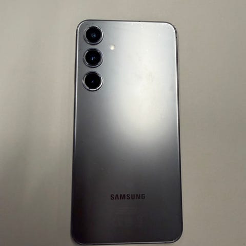 Samsung Galaxy S24 Plus mobiltelefon med 256 GB lagringskapasitet. Pent brukt, bare en liten merke på skjermen som kan ses på bildet.