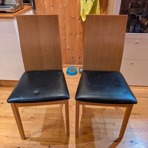 4 stoler gis bort. En av stolene har malingsflekker, men de bør rengjøres med vann. Må hentes i Tromsdalen.