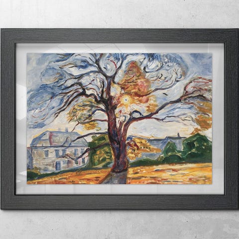 Eystein Sigurdsson «fra naturen», kunstverk med mørke og lyse fargetoner. Verket er innrammet av «Rammelars» i Brogt. 15.