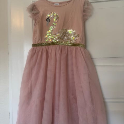 Rosa kjole med enhjørning. Står str 8 år på kjolen, men er nok litt liten i str.