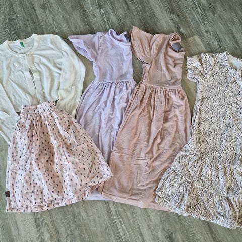 Selger en pakke med 3 skjørt og 1 matchende topp. Alt er str 140 foruten det hvite skjørtet fra Primark som er str 152 men veldig lite og derfor brukt samtidig som str 140.