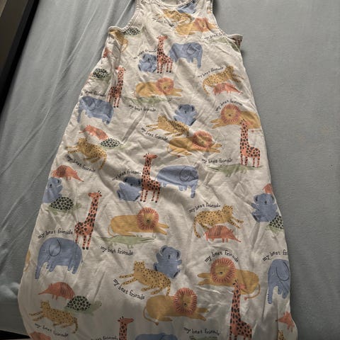 Marks & Spencer sovepose for barn i størrelse 80. Fargen er hvit med gult giraffmønster. Laget av bomullsmateriale. Passer for både jenter og gutter.