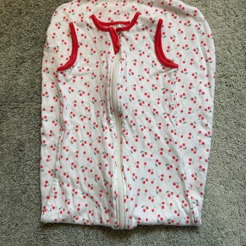 Marks & Spencer sovepose for barn i størrelse 98. Laget av bomull, hvit med mønster av gule giraffer. Passer for både gutter og jenter.