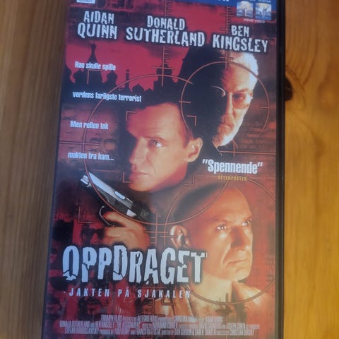 Vhs-film av Jakten på rød oktober med Sean Connery og Alec Baldwin. Filmens omslag viser en rød og svart design med tittel og skuespillernavn. Produktet er en fysisk vhs for hjemmevisning.