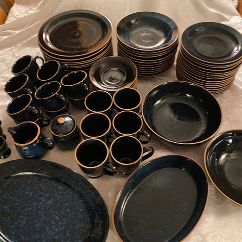 Usikker på merket, men dette er solid steingods som har stått ubrukt i mange år og er i veldig god stand. Ønsker helst å selge samlet. Ser ingen andre som selger dette settet!