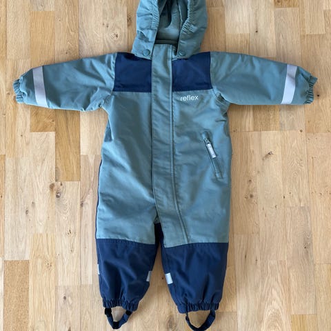 Ingen synlige bruksmerker annet enn bittelitt på knærne (ubetydelig). Hele strikker og avtakbar hette. Brukt i noen få uker av ett barn.