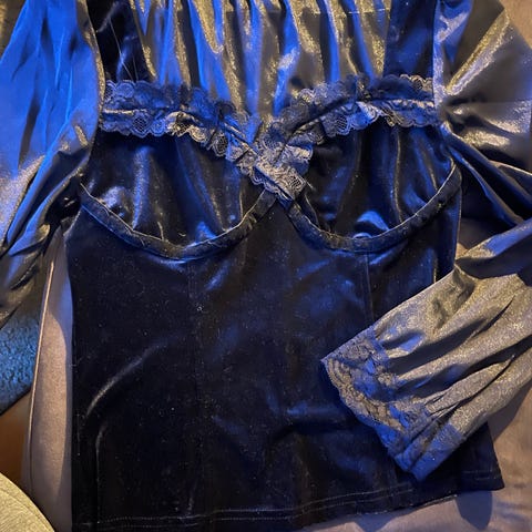 Nydelig body, brukt én gang forrige jul. Den fremhever figuren vakkert. Kneppes nederst med knapper. Du kan kjøpe dette skjørtet med den +190 NOK