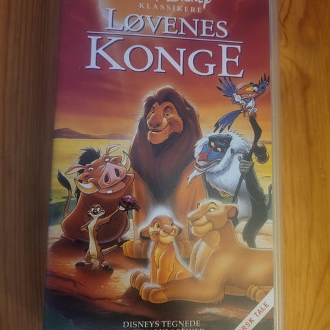 Disney Løvenes Konge VHS-kassett med original omslag. Inneholder den klassiske animasjonsfilmen Løvenes Konge. Passer for alle aldre.