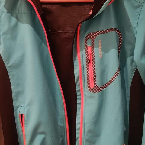 Icepeak Annet yttertøy for dame i størrelse 40. Jakken er grønn og laget av bomull. Den har hette med pelskant og flere lommer, samt vattert innerfôr for ekstra isolasjon.