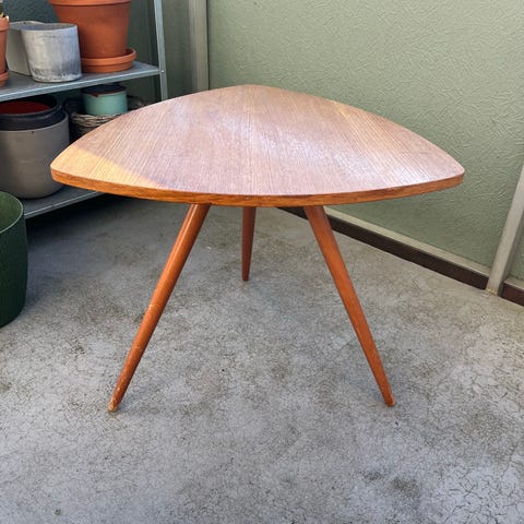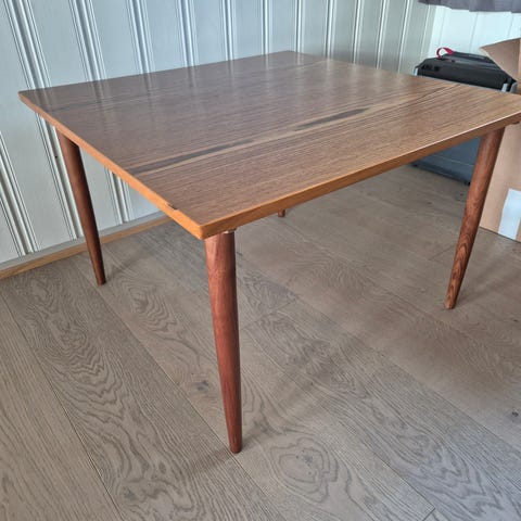 Selger et kvadratiske teakbord fra epoken for skandinavisk modernisme, en periode som i internasjonal design omtales som mid-century modern. Bordet har det rene og enkle formspråket som gjorde nordisk møbeldesign til et internasjonalt referansepunkt fra slutten av 1950-tallet og gjennom 1960-tallet.