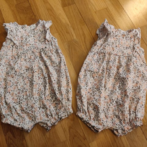 Selger en liten pakke med 4 romper/ onepiece til jente i bomull. 2 er fra Newbie, og 2 fra HM.
