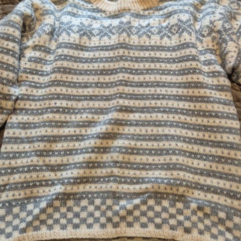 Deilig og varm ullgenser fra Barfota, med klassisk nordisk mønster. Myk ullblanding, normal passform og ribbekanter. Pent brukt, uten hull eller nupping. Passer både dame og herre avhengig av ønsket fit. Str S/M