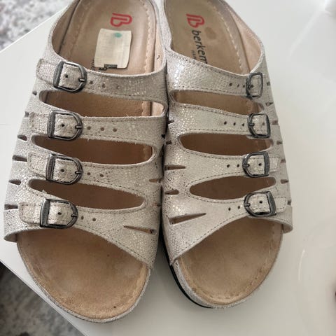 Nydelig tysk kvalitet,har dessverre fått forbud mot sandaler uten bakstropp etter kompliserte brudd i ankel/fot,Berkemann er ikke billig,men de ER best!KUN BRUKT EN GANG INNE ∕∕∕∕∕
