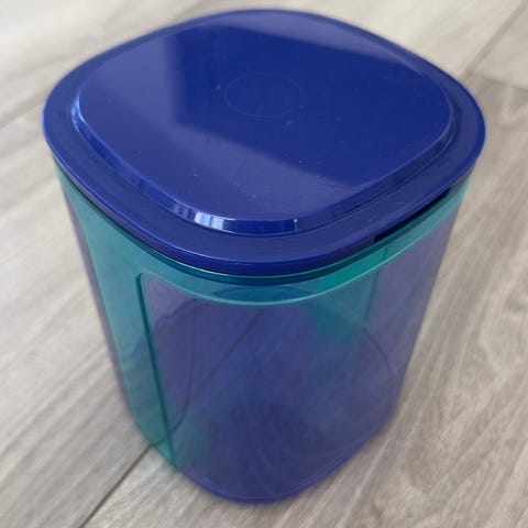 Tupperware oppbevaringsboks med kapasitet på 1,9 liter. Boksen er blå og laget av plast. Egnet for oppbevaring av matvarer.