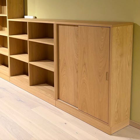Vi kjøpte IKEA Tonstad vitrineskap i eikefiner, og skulle gjerne byttet med en som har samme modell i brunbeiset eikefiner.