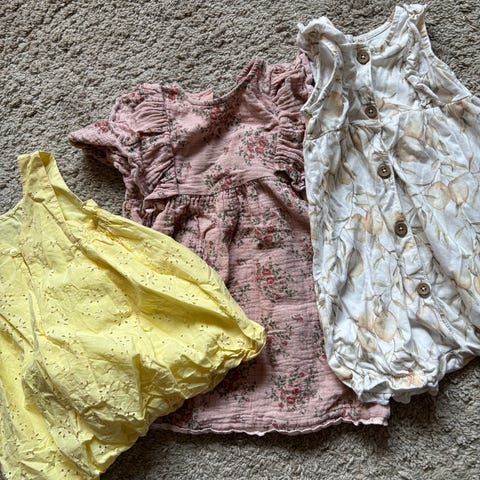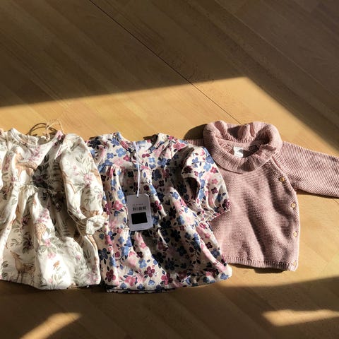 En kjole og body i str 62, en kjole i str 68. Fra Noa Noa, Charanga og Hm. Pent brukt.