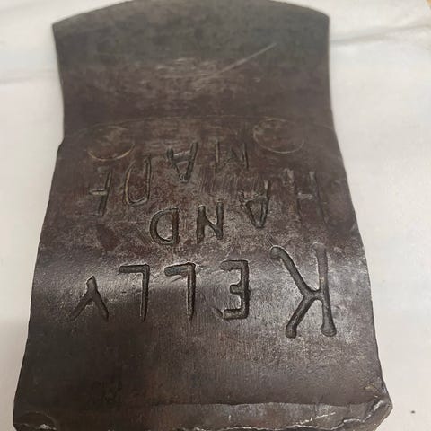 Sakseslipt bile. Bladet er 24 cm bredt 25 cm "høyt". 3,3 kg med skaft.