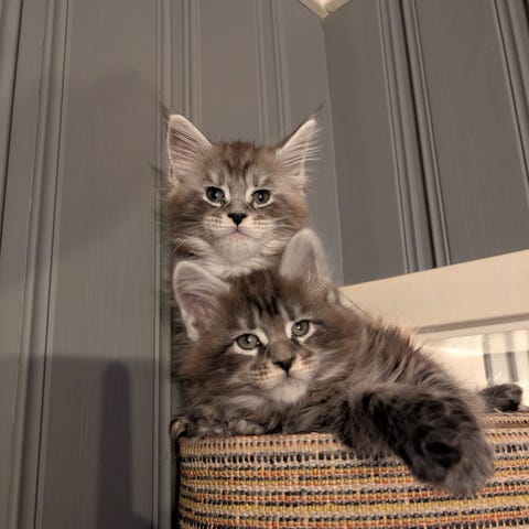 Vårt nydelige Maine Coon-kull er nå 4 uker gamle, og de begynner å vise masse personlighet!
