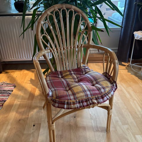Pent brukt stol produsert i solid bambus. Stødig og god. Med sving.