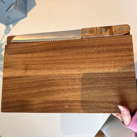 Ubrukt fiskegiljotin som har en praktisk kniv og en skjærefjøl du også kan bruke til andre oppgaver.