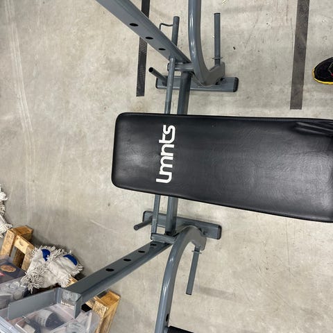 Lmnts treningsbenk med integrert pull-up stang og dips håndtak. Benken har polstret sete benk og stativ i god stand